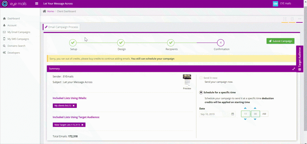 - Review, launch or schedule campaign (date and time) … and it’s ready to go !