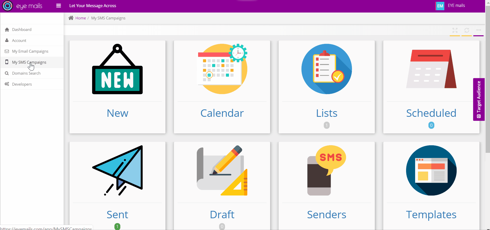 After double checking and confirming your composed SMS, you can select your target audience from your created i-mails lists and launch it, in order to be sent immediately or scheduled for a specific date/time.