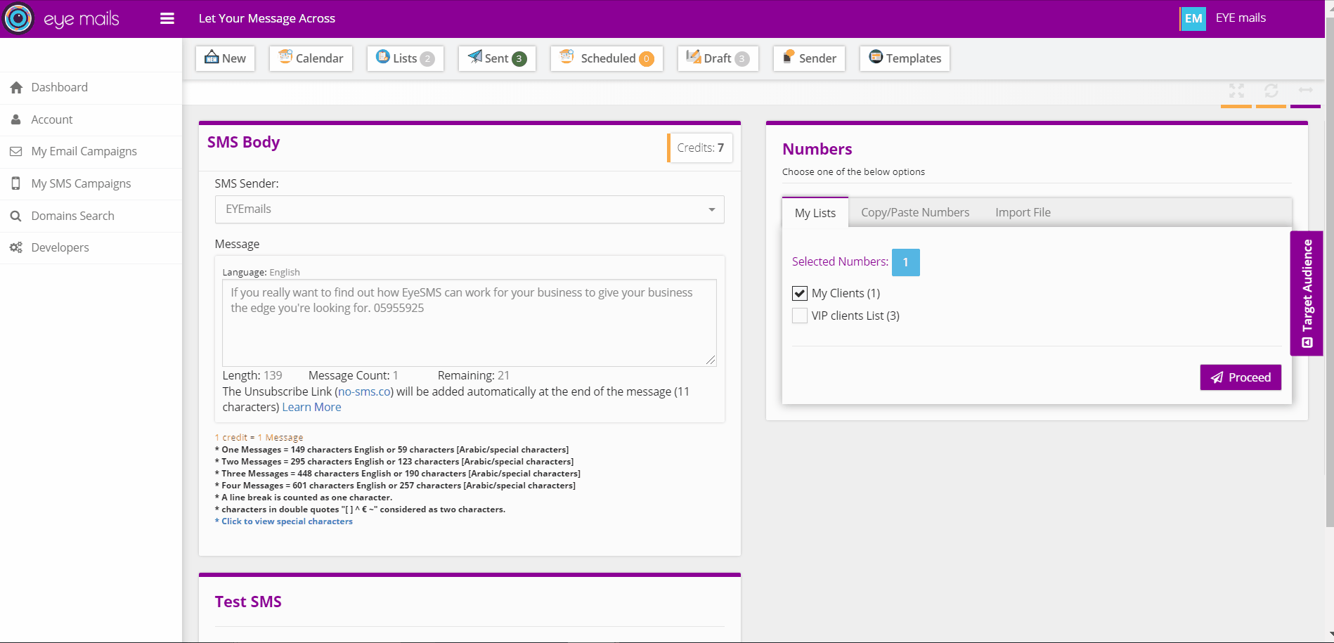 Clients will be able to save SMS scripts as templates in their account, so that they can be used for their upcoming campaigns (ex. birthday, reminder…).